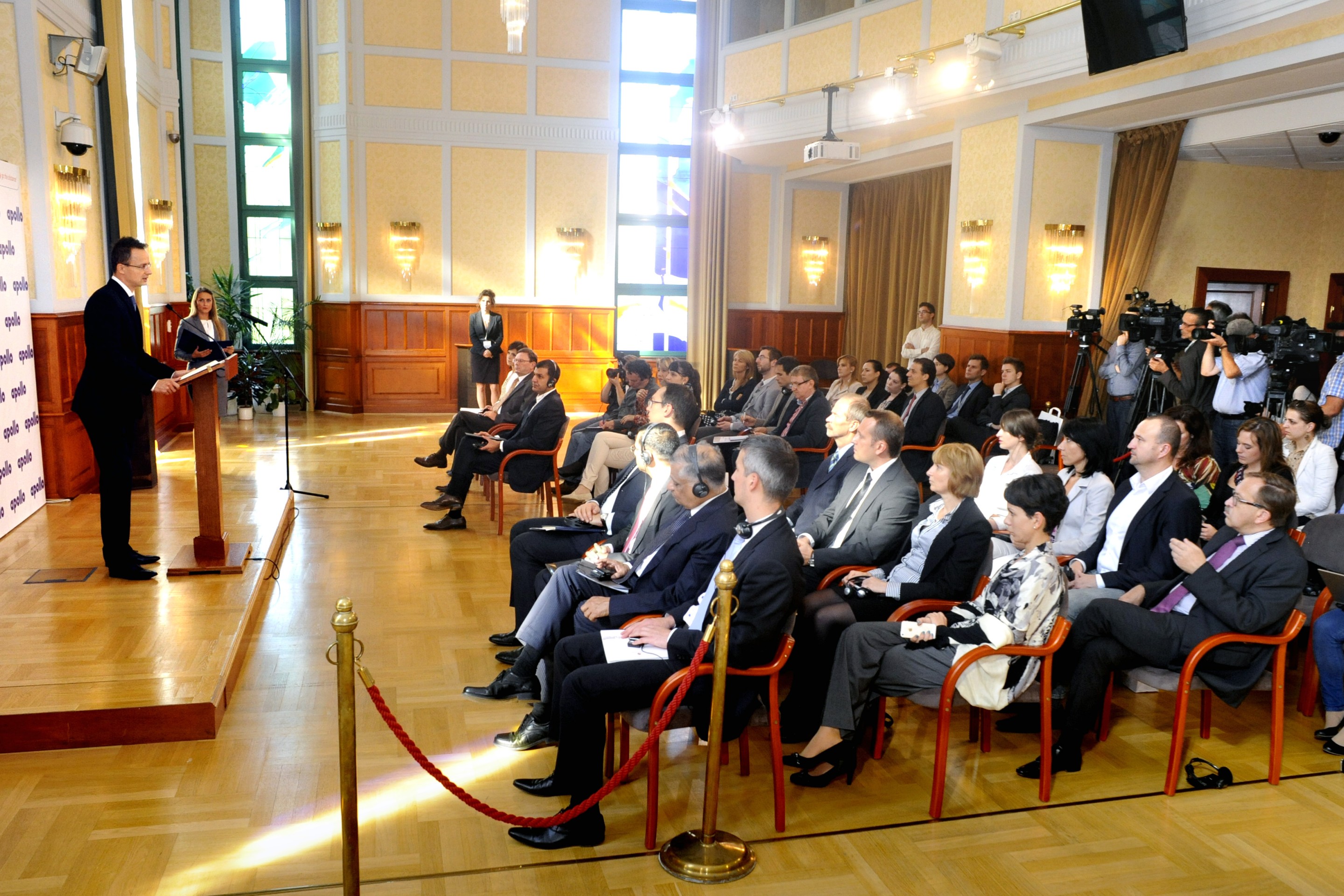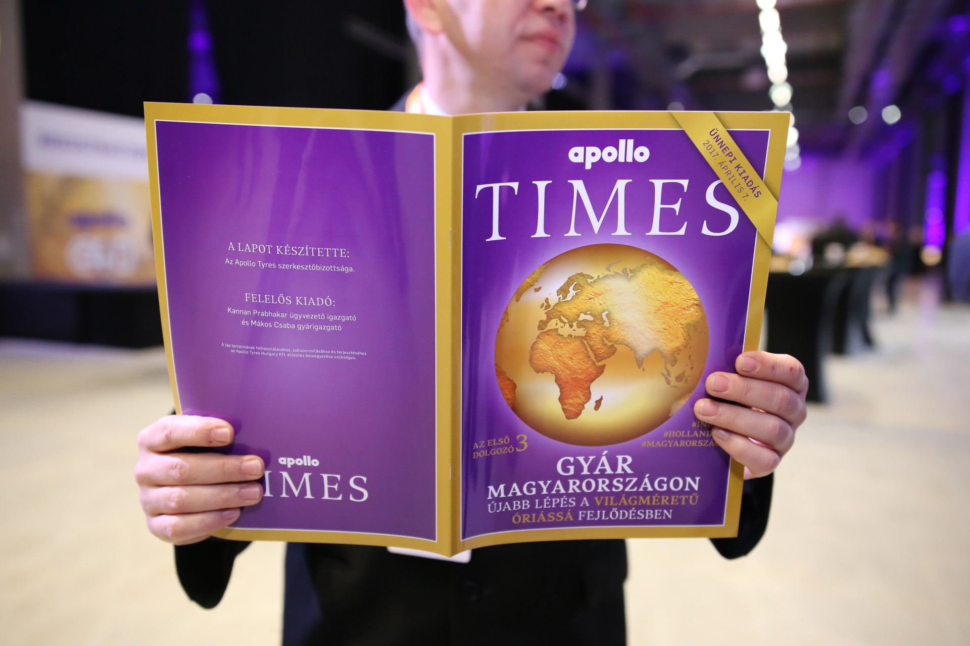 Sajtóesemény: Bejelentés a Külügyminisztériumban (2014. szeptember) A beruházás hivatalos bejelentése a Külügyminisztériumban történt, ahol beszédet mondott Neeraj Kanwar, az Apollo Tyres tulajdonosa és alelnöke, valamint Szijjártó Péter, akkor még államtitkárként.